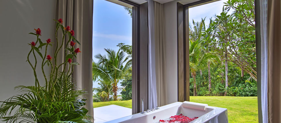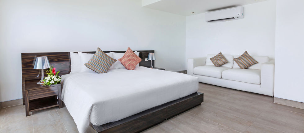 Built on a hillside facing the bay, Ocean’s 11’s four floors descend from top to bottom. At the entrance, guests are welcomed by a spacious living area with plush sofas, marble Buddha statues, and not to mention the gorgeous ocean view. The room opens up to a terrace surrounded by a reflection pond.
