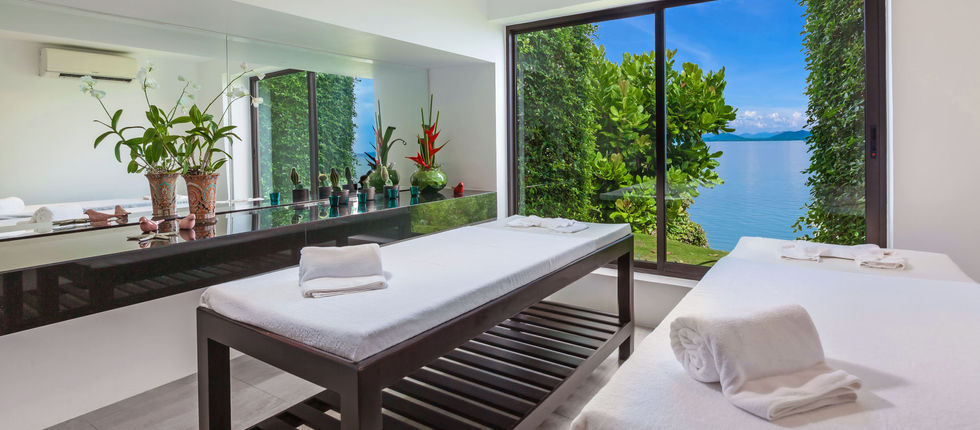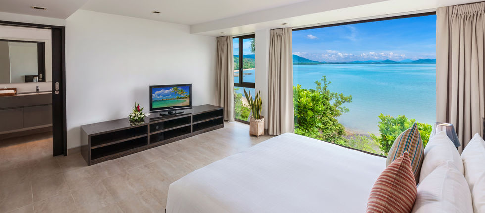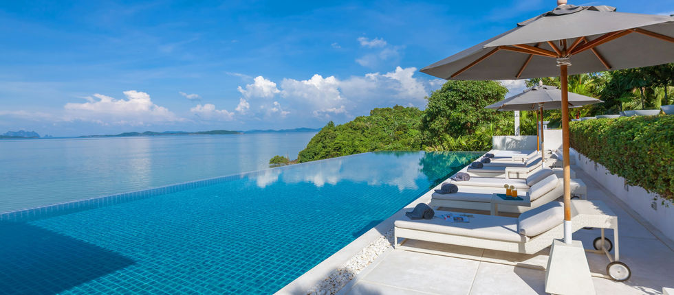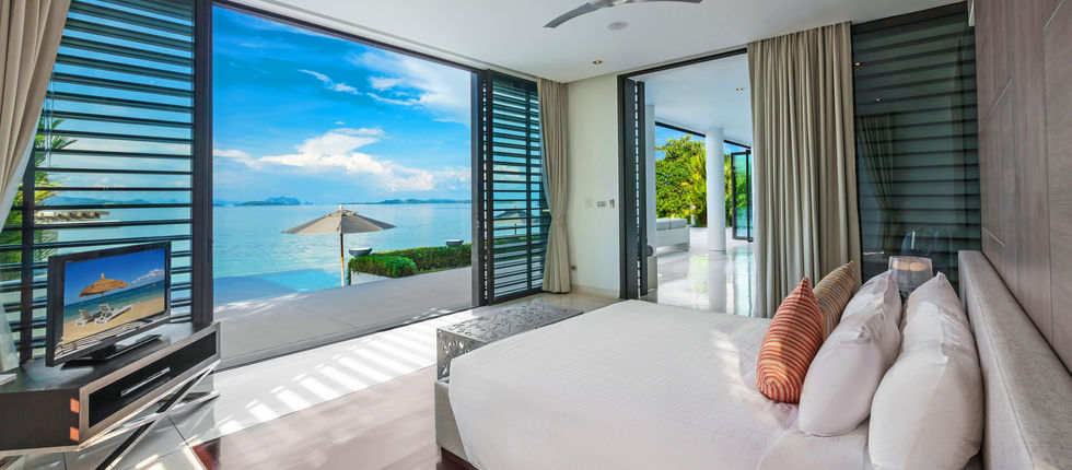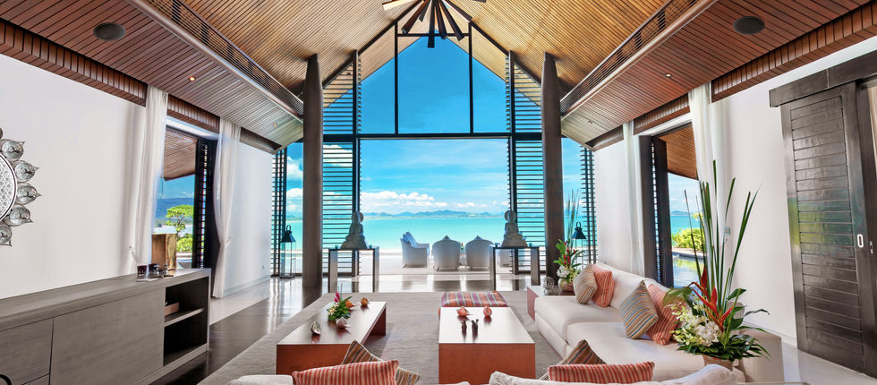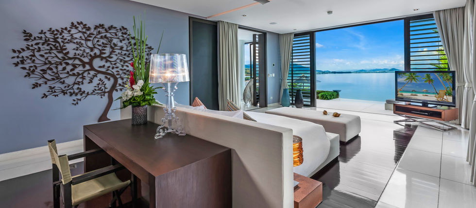 The succeeding floor holds the villa’s breathtaking infinity pool that seems to extend to the sea when seen from inside. The estate also has its own private beach, a bar with indoor and outdoor lounging areas, a gym, and a spa room. Almost all the rooms in the villa, including its 6 bedroom suites, provide stunning views of the turquoise blue ocean and the island formations on Phang Nga Bay.